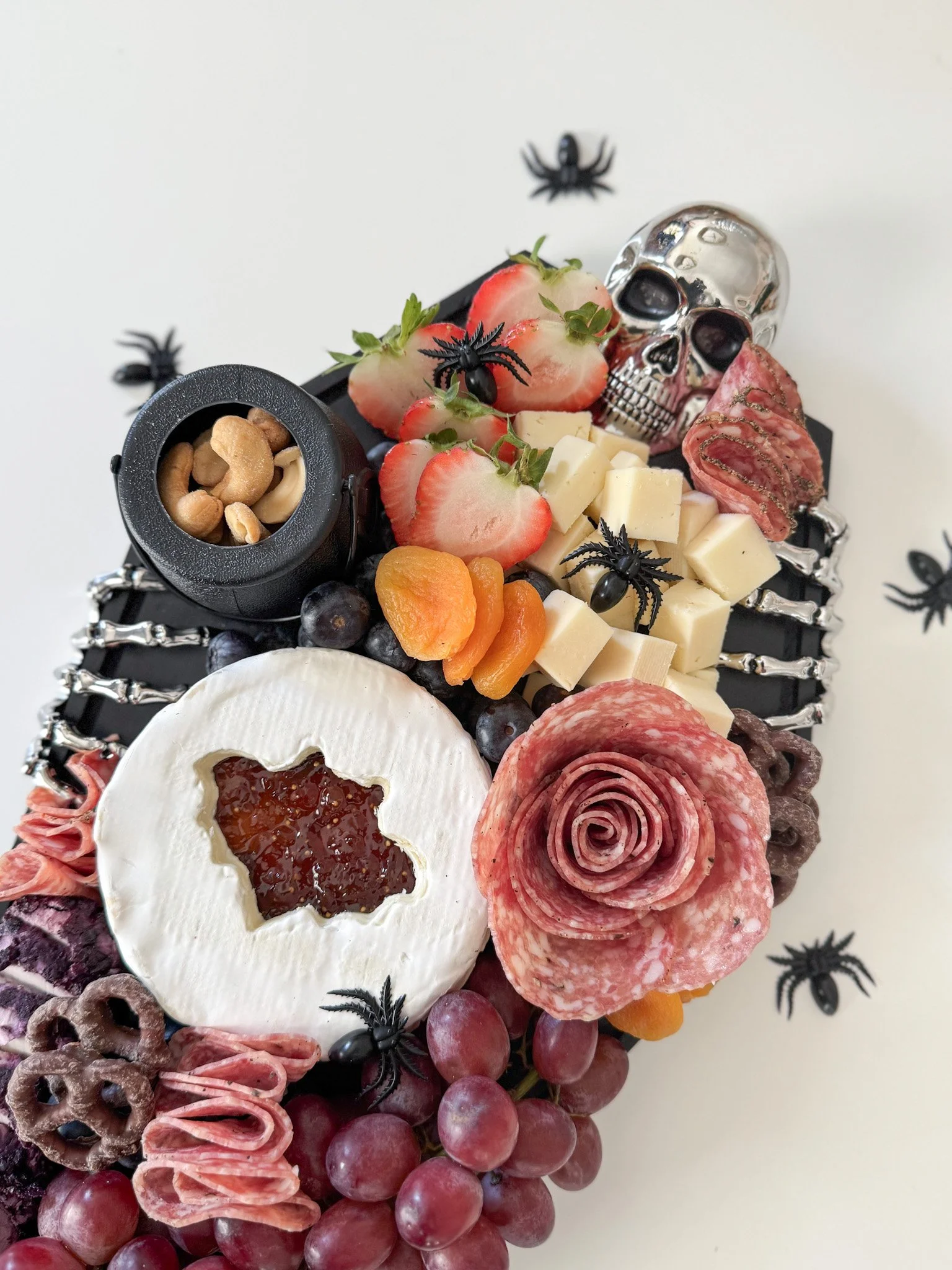 Serve chills and thrills this Halloween with the Spooky Charcuterie Board. A hauntingly 17β black wood charcuterie board thatβs sure to be the center of your darkly delicious spread.